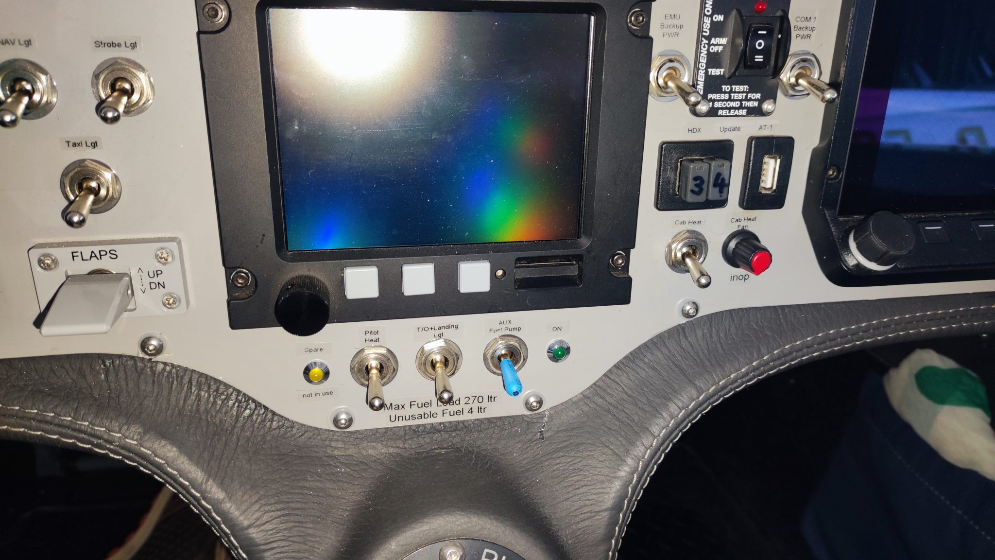02) Der Schalter für die Aus.-Fuel Pump sollte farbig markiert werden, damit er sich leichter von den übrigen Schaltern abhebt.