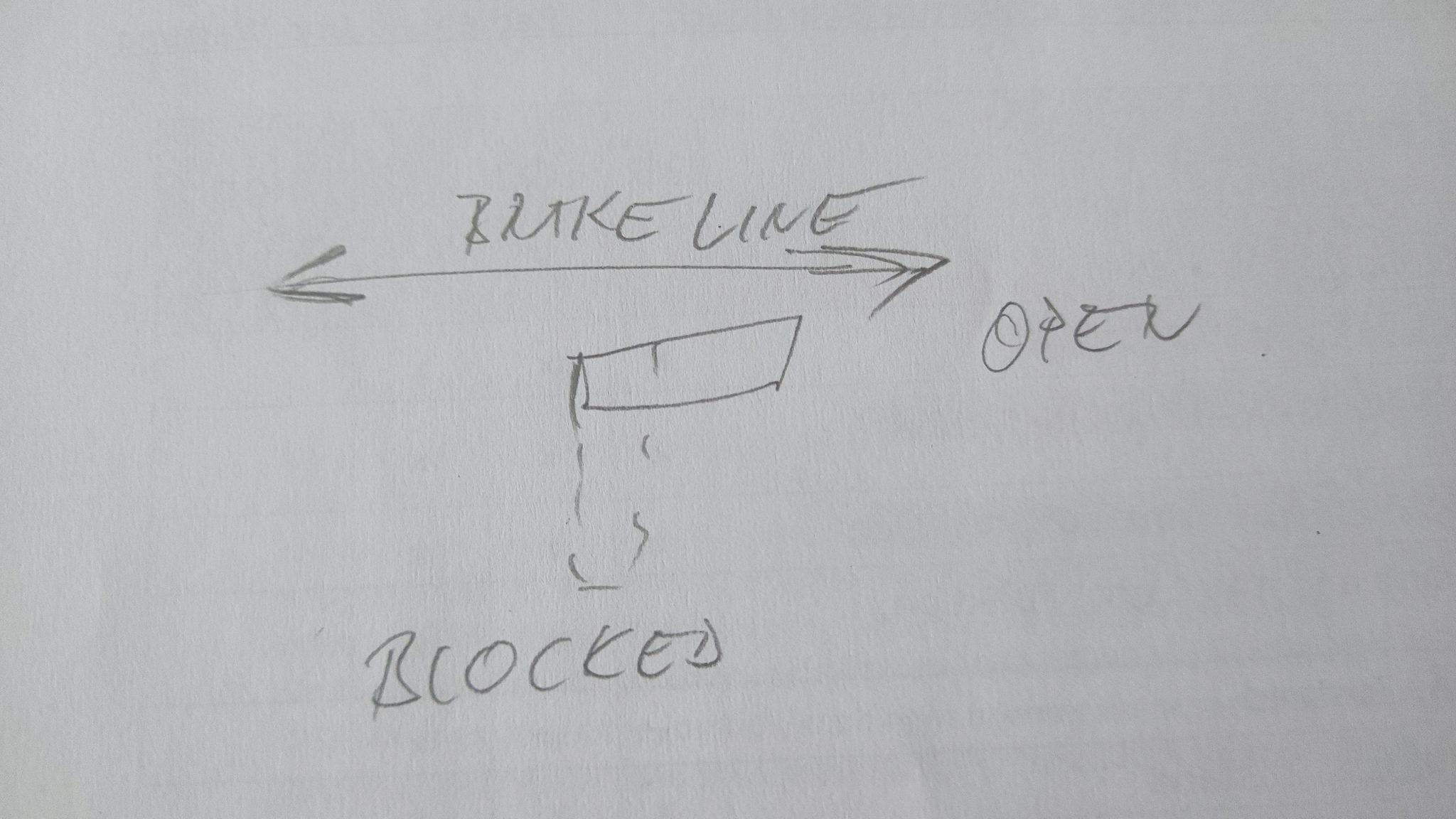 Zu 3: Zur Beschriftung der Parkbremse habe ich mir folgende Gedanken gemacht. Das Ventil schaltet eigentlich keine Parkbremse. Deshalb ist die Beschriftung Park Brake wohl eher irreführend. Als Piktogramm dachte ich an einen links-rechts-Pfeil, den ich mit „Brake Line“ beschriften werde. Dies deutet auf die Lage der sich unter dem Blech befindlichen Leitungen hin. Statt ON und OFF werde ich die Endstellungen mit „OPEN“ und „BLOCKED“ beschriften. Das trifft die physikalischen Begebenheiten besser.