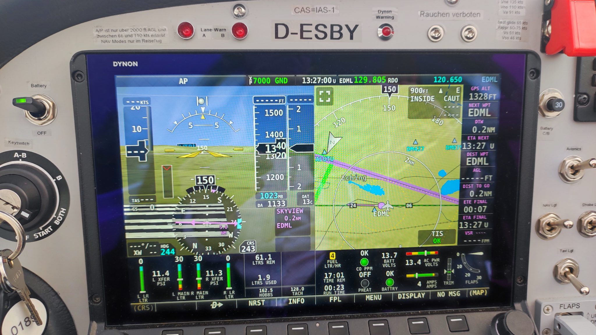 Don Jones hat mir zum Test Aviation und Obstacle Database Files von Airmate gemailed. Nachdem ich herausgefunden habe, dass im März das letzte Mal eine korrekte Anzeige der Synthetic Vision (Terrain) stattgefunden hat, habe ich zuerst die März Dateien von EasyVFR nochmals geladen. Leider konnte ich die Runway nicht dadurch zur Darstellung an der richtigen Position bringen. Daraufhin habe ich die Airmate Dateien geladen. Und, hurra, die Bahn ist da! Zuerst nur quer vor mir, weil ich am Holdingpoint 06 geparkt hatte. Jetzt dachte ich, es könnte dadurch eine Art Reset stattgefunden haben und lud der Reihe nach von Januar bis Oktober alle EasyVFR Datafiles. Kein einziger hat die Runway dargestellt. Auch nicht der Satz vom März. Daraufhin habe ich wieder die Airmate Dateien geladen und die Runway war wieder da. Danach bin ich auf die Bahn 24 gerollt und hatte ein perfektes Bild. Das ist doch ein Erfolg. Ich habe eine Platzruunde gedreht. Von der Position kurz vor dem Aufsetzen bei der Landung habe ich leider kein Bild mehr gemacht. Was jetzt EasyVFR zu dieser Situation sagen wird, ist unklar. Ich bin neugierig.